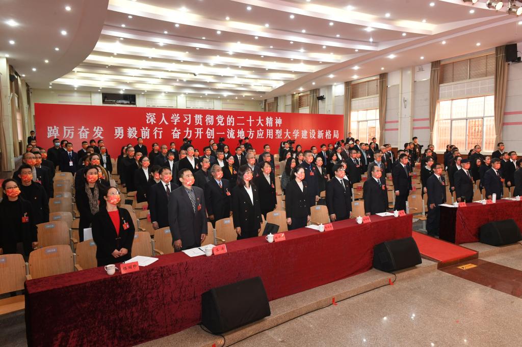 “道阻且长,行则将至,行而不辍,未来可期”。大会号召,让我们更加紧密团结在以习近平同志为核心的党中央周围,坚持用习近平新时代中国特色社会主义思想凝心铸魂,牢记习近平总书记在党的二十大报告中提出的“全党同志务必不忘初心、牢记使命,务必谦虚谨慎、艰苦奋斗,务必敢于斗争、善于斗争,坚定历史自信,增强历史主动,谱写新时代中国特色社会主义更加绚丽的华章”的要求,以永不懈怠的精神状态和砥砺前行的奋斗姿态,团结带领广大师生全力推进学校内涵式高质量发展,奋力开创一流地方应用型大学建设新格局!